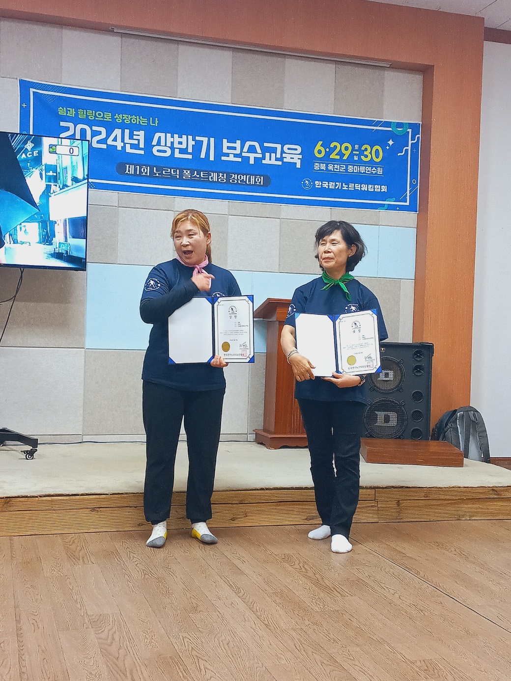 이번 보수교육의 하이라이트는 '노르딕폴 스트레칭 경연대회'였다. 예상보다 적은 3팀의 참가로 맥 빠진 대회가 될까 우려했는데 괜한 걱정을 했다. 준비한 노력과 열정이 묻어나는 퍼포먼스에 모두 감동의 박수와 환호로 화답해 드리는 아름다운 장면이 나왔다.