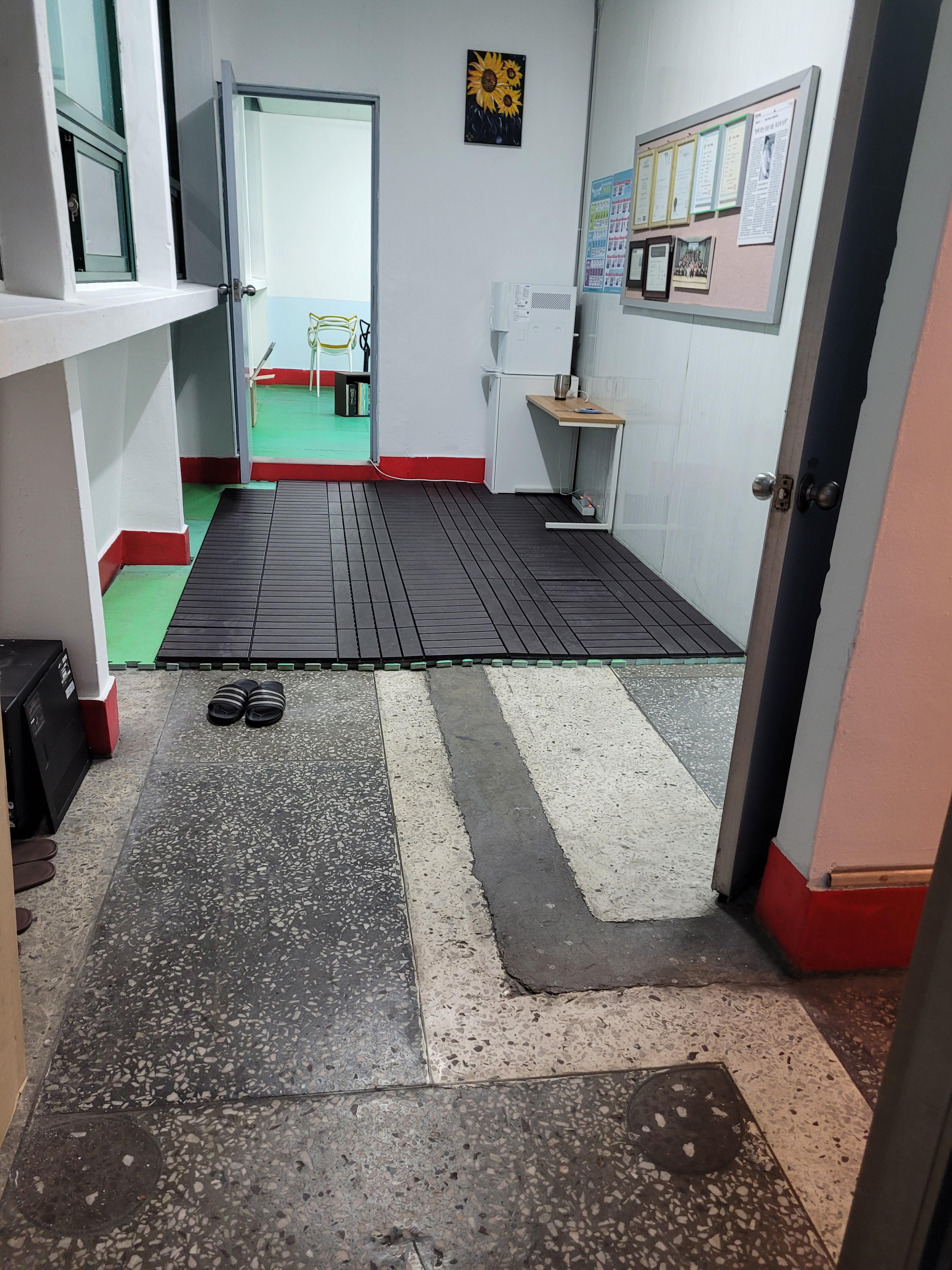 운동실 매트깔기 작업 1m×10m. 롤 한개의 무게가 무려 62kg! 2층으로 올리는게 장난 아님! 후배 도움으로 2층에 올렸다. 이제부터는 나의 시간이다. 차근차근 깔아보자! $나의 창업일기 2023.03.23